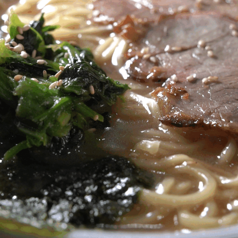 いつまでもアッツアツで寒い日にちょうどいいね。最初はガツンと濃厚な豚骨スープ、一口飲んで豚骨だな〜となりつつも、後から塩のキレを感じる。