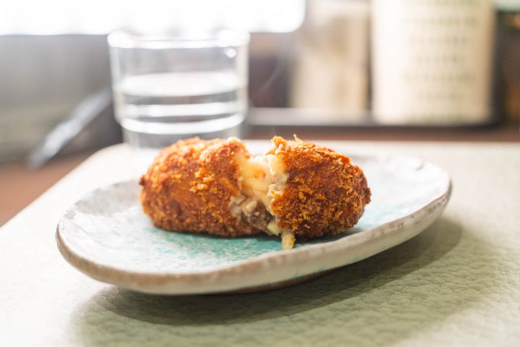 「煮干し拉麺 アンチョビー」の煮干しスープに麺、チャーシューなどが入ったコロッケは、クリームコロッケ系統のような滑らか食感のおもしろコロッケ。スープも塩分が濃いとかはなくて、調整された食べやすい味でした。
