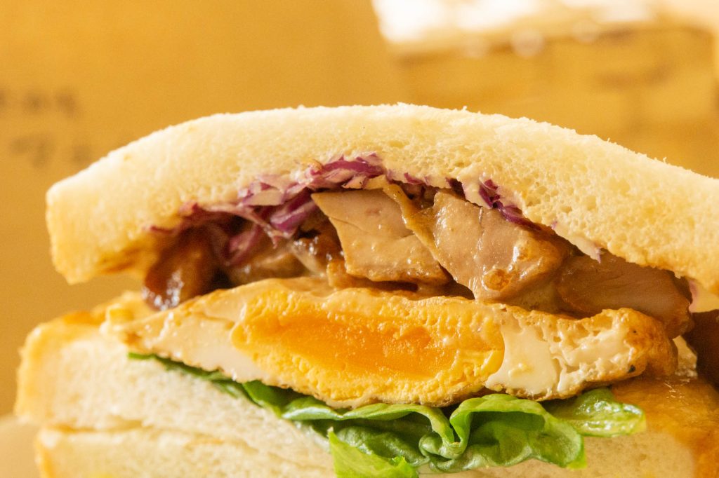「角煮と高菜」と「てりたま」のサンドを重ねてみました。