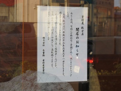 素材屋枚方店が閉店してた 投稿日 2010年5月13日 18:44 著者 カズマ カテゴリー グルメ 牧野高校の近くにある素材屋枚方店が閉店してました。閉店の貼り紙。 3月31日に閉店したとのことなんですが、僕は全く気づいてませんでした。お店の前は通ってたはずなんですけどねー。しばらく看板は残ってたのかな? 近くにあったタイムスって本屋のところもそうですが、お店が閉店したままだと街並みが寂しいので早めに何かが入ってほしいですね。 シェア ツイート LINE