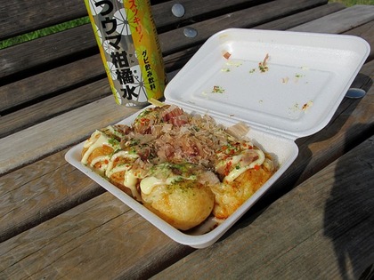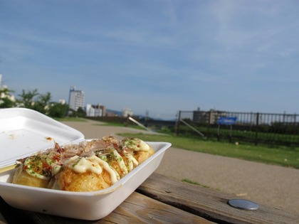 青空とたこ焼き。一見爽やかな画像ですが、撮ってるほうは汗ダラダラですw