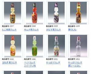 キムチ風ラムネ、カレー風ラムネ、水なす風ラムネ、さらに今年流行りのラー油風ラムネなど。。。全然おいしくなさそうな名前のラムネがたくさんw
