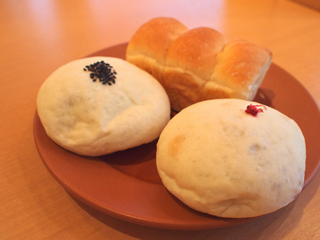 あんぱん・クリームパン・お豆パン・桜あんぱんの4種類。(※桜あんぱんは期間限定、4月末ぐらいまではあるそうです) その他のパンもいくつか紹介します!