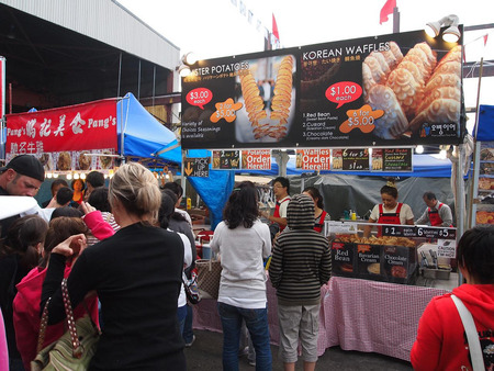 一緒にたい焼きも売ってますが看板に注目。説明が「KOREAN WAFFLES(韓国ワッフル)」になってます。おいおい…。