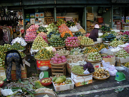 ベトナムの市場の写真。日本で見かけないものばっかりですね。