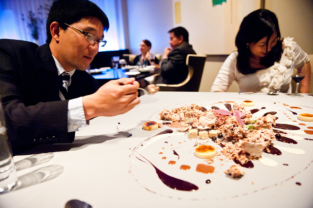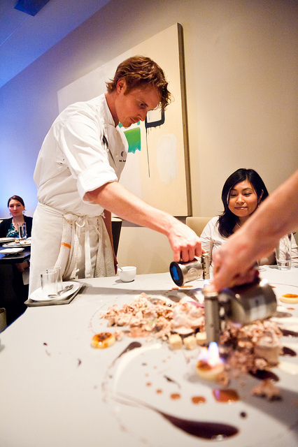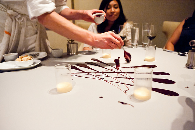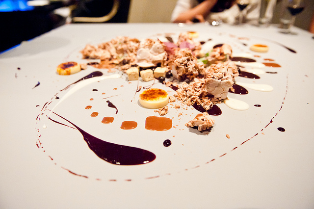 シカゴのレストランの写真。アートなデザートですが何か変だなと思ったら皿がありません。
