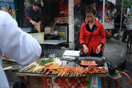 中国・広州市の写真。いろんな串焼が売ってます。
