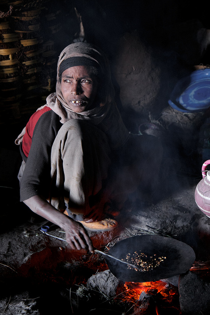 コーヒー・セレモニーというエチオピアとエリトリアの伝統的な習慣で、日本でいう茶道のようにコーヒーを飲むことを儀式化したものだそうな。Wikipediaに詳しい手順も載ってます。