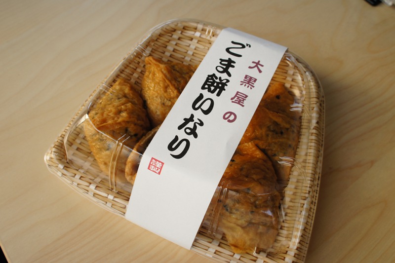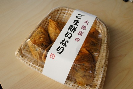 大黒屋と言えば「おいも巻」や「チーズケーキ」、「307プリン」などはグルメレビューを見て知ってたんですが、つい先日「お店みせて!」で紹介したときに初めてこの『ごま餅いなり』というお菓子があることを知りました。