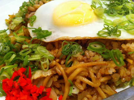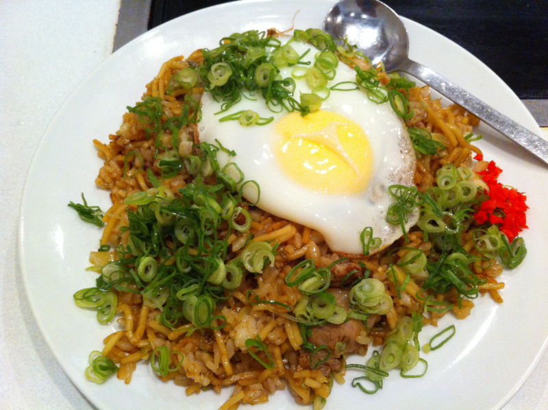 味は『ガーリック醤油』を選びました(もう1種類味があったけど何やったか忘れた)。目玉焼きが載っております。