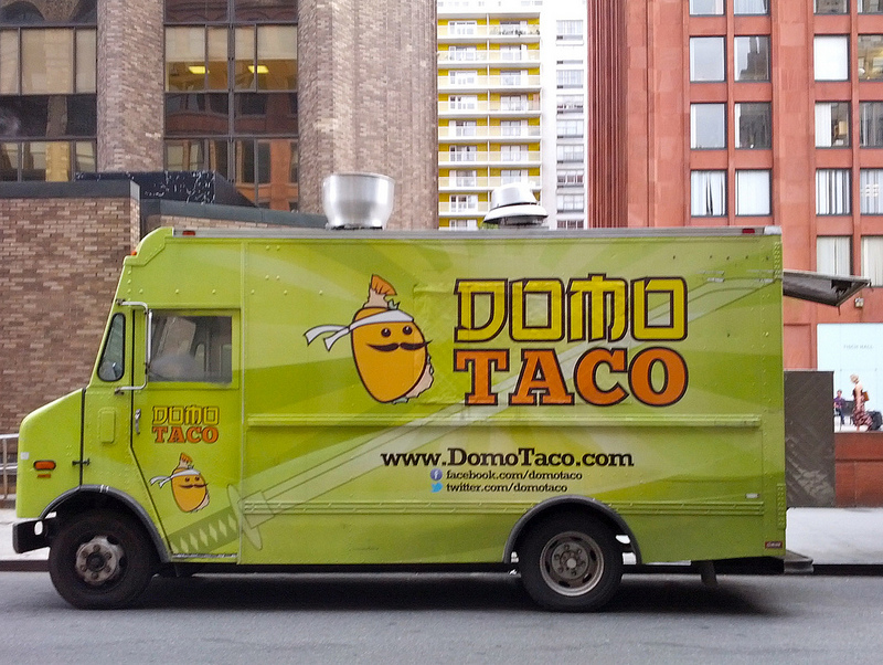「DOMOTACO」というフードトラック。日本刀が描かれてますが、公式サイトやFacebookページを見てみるとメインはタコスで焼きそばとかお好み焼きも売ってるみたいです。