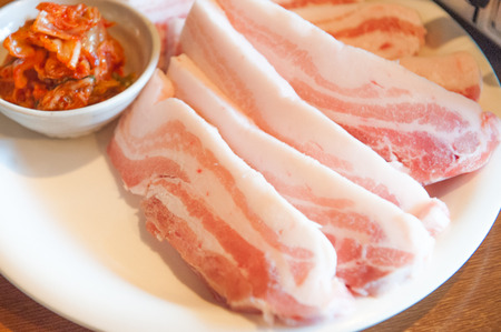 ■彩り食べくらべサムギョプサル(塩豚バラ、ピリ辛キムチ豚バラ、スパイスガーリック豚バラ、厚切り塩豚バラ)2人前3,400円もあります。