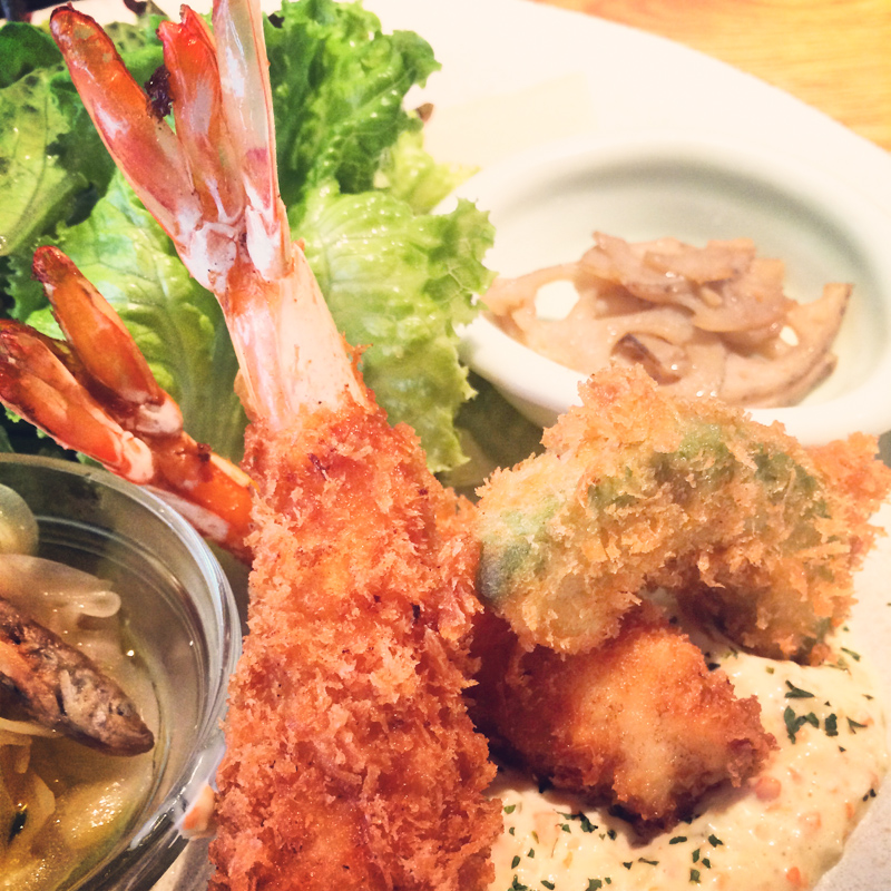 おさや@ひらつーは「天然海老フライとアボガドフライタルタルソース」を注文。