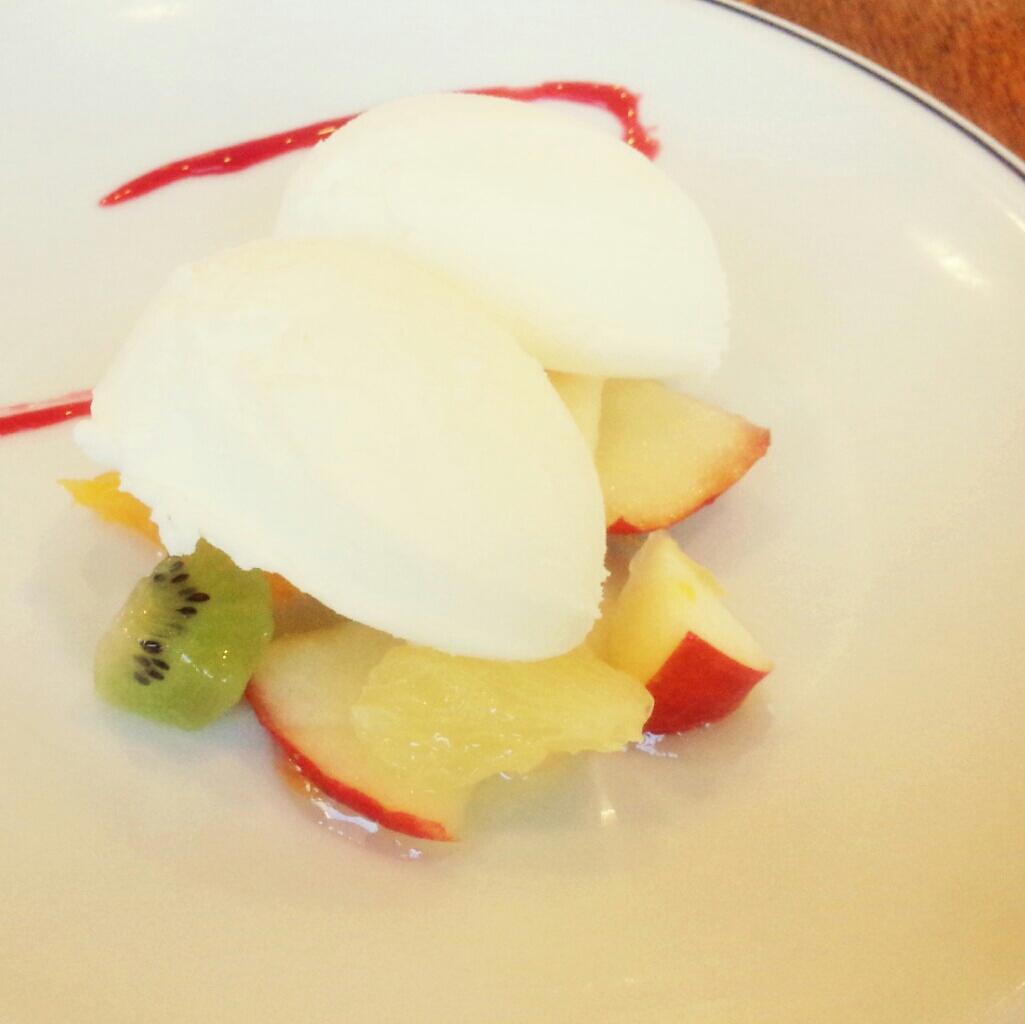 添えてあるフルーツがシロップ?(違ってたらごめんなさい。)漬けになっていて、ジェラートとうまく馴染んでいました!