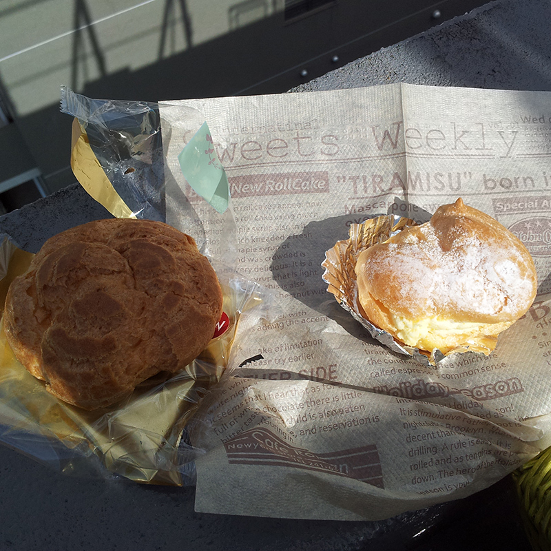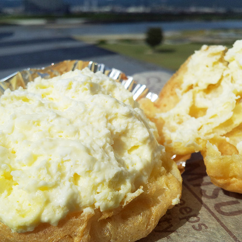シュークリームは少しこぶりで、生地は見た目どおり少しパン寄りな印象。クリームが独特というか、おそらくダブルクリームで生クリームの方が多め?な感じの素朴な味がします。そのせいかクリームにフワフワ感がありました。