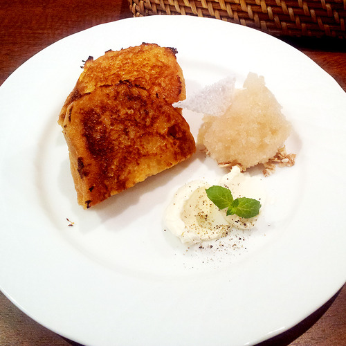 フレンチトーストは横に添えられた梨のジェラートやクリームチーズと黒胡椒をつけて食べても良かったですが、それぞれ単体で食べても美味しかったです。フレンチトーストは何だか甘みがおいもさんのような味だなぁと思い、店員さんに聞いてみると甜菜糖の「ヴェルジョワーズ」なる砂糖を使用しているからかも……と仰られていました。