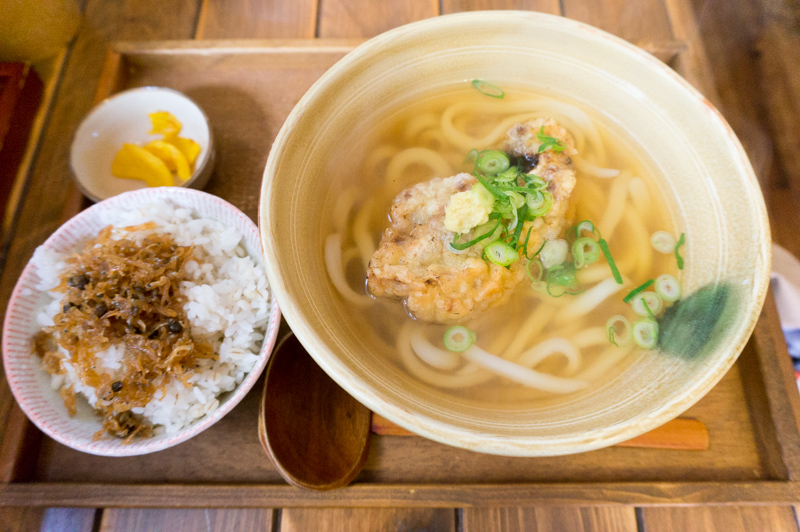 ランチメニューはプラス料金でごはんと漬け物付きにできます。ごはんのふりかけは日替わりでこの日はちりめん山椒でした。(※取材時に価格改正の前だったので今回は価格を掲載しておりませんがすごくお手頃価格でした。料金はお店でお確かめください!)
