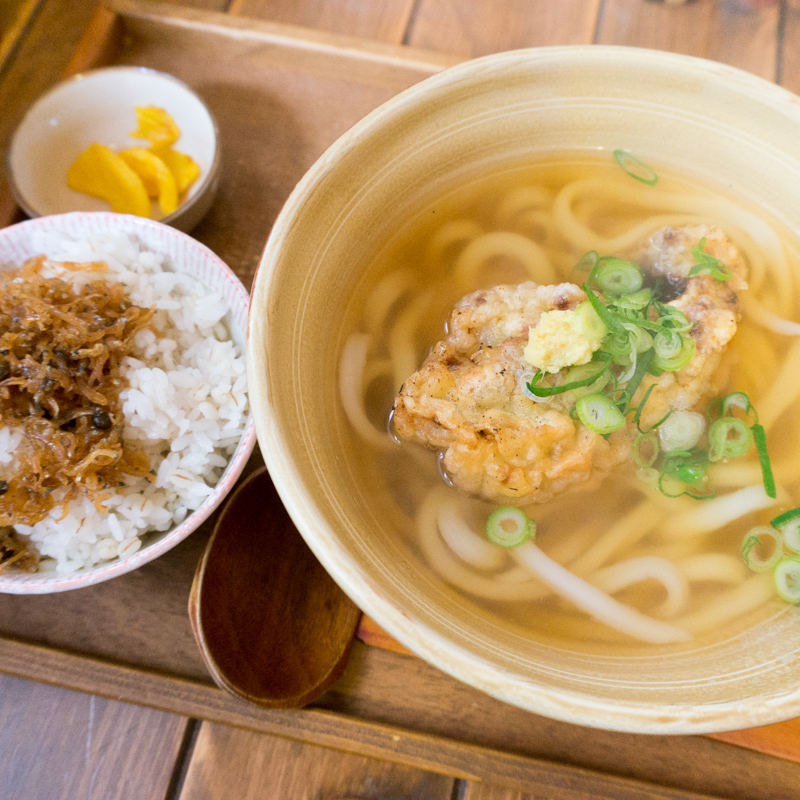 うどんの出汁は、イリコ強めで風味が香り高くて、でも苦みがなくすっきり系。麺はコシ強めでもっちもち!つるつるっと美味しくいただけます。