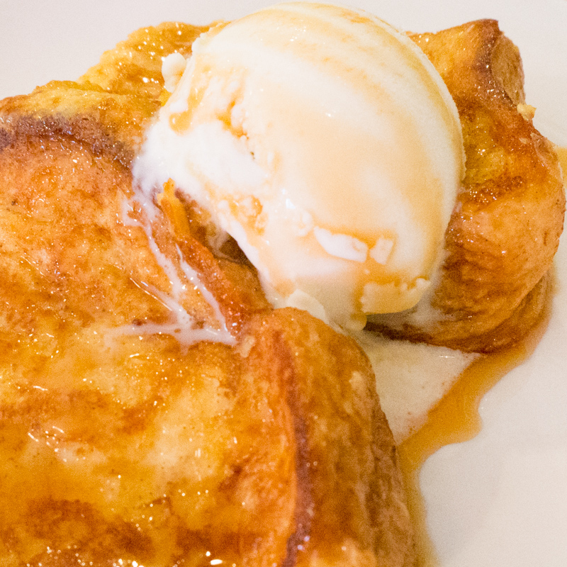そのままで・アイスクリームと一緒に・生クリームと一緒に…と3パターン味わえます。味の変化を楽しみながら食べるという意味では『ひつまぶし(→Wikipedia)』のようなフレンチトーストとも言えるのではないでしょうか!