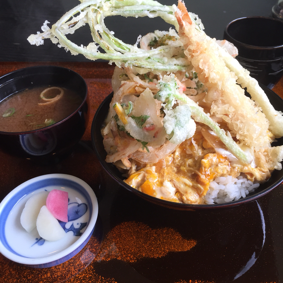 天ぷら、丼ぶりからはみ出して立ってます![]()