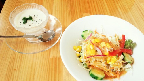 この日は冷製スープ(おそらくビシソワーズ)でした。