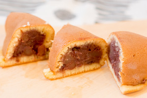 ・特徴:ふわふわな生地にあんこがた〜っぷり入っています。あんこは北海道十勝産の小豆100%使用。しっとりした大粒の小豆が見えます。