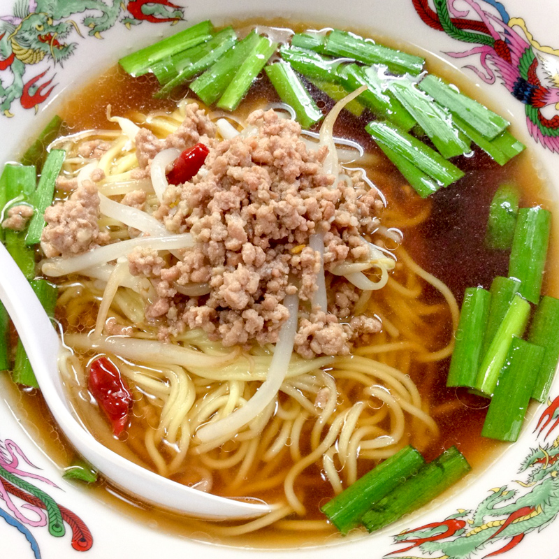 台湾ラーメンはニラ・もやし・ミンチ肉・鷹の爪が入っていました。一見すると普通の醤油ラーメンですが、スープをすするとほのかに異国情緒あふれる香りが…。普段あまり口にしない味の広がりに、思わずスープを飲み進めてしまいました。