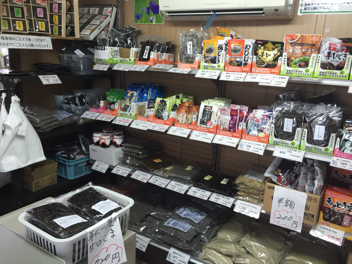 一番人気の塩ふき昆布の製造過程で出る不揃い(主に細かくなってしまったもの)など、工場直売ならではの商品がたくさん売られています。