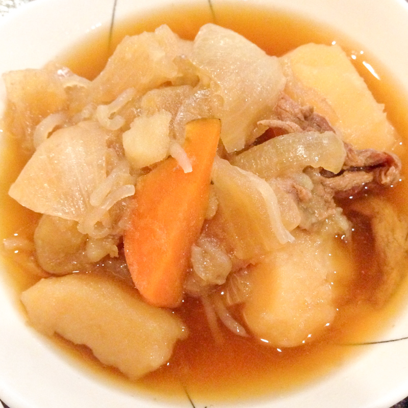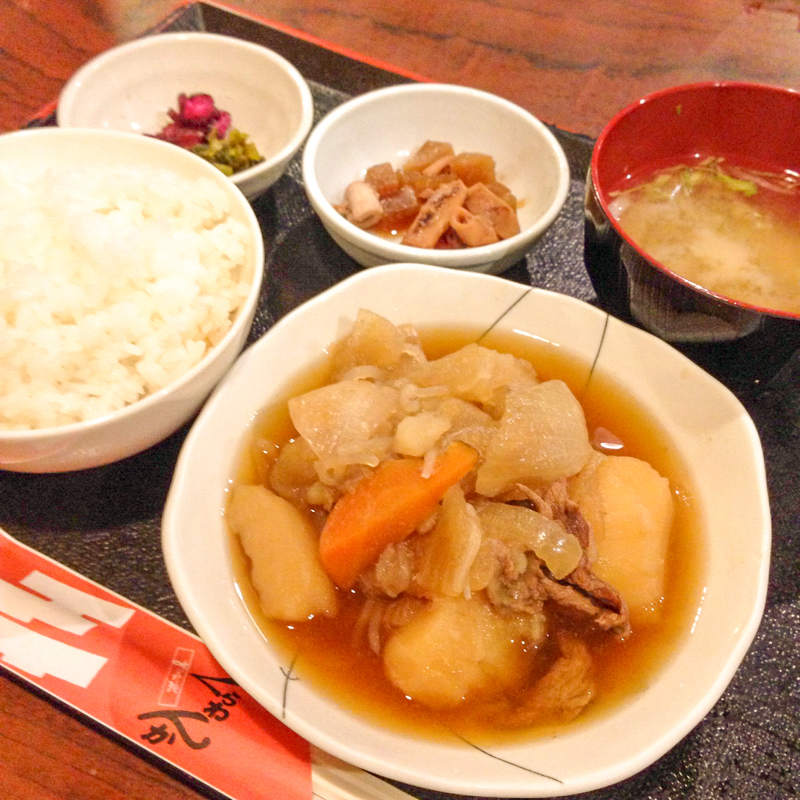 肉じゃがは、豚肉・じゃがいも・にんじん・たまねぎ・糸こんにゃくが入ったホッとする家庭の味で、靴を脱いでいる開放感も手伝ってのんびりとした時間を過ごせました。