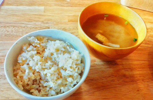 栄養たっぷりの玄米ごはんと塩麹入りお味噌汁もいただいて、
