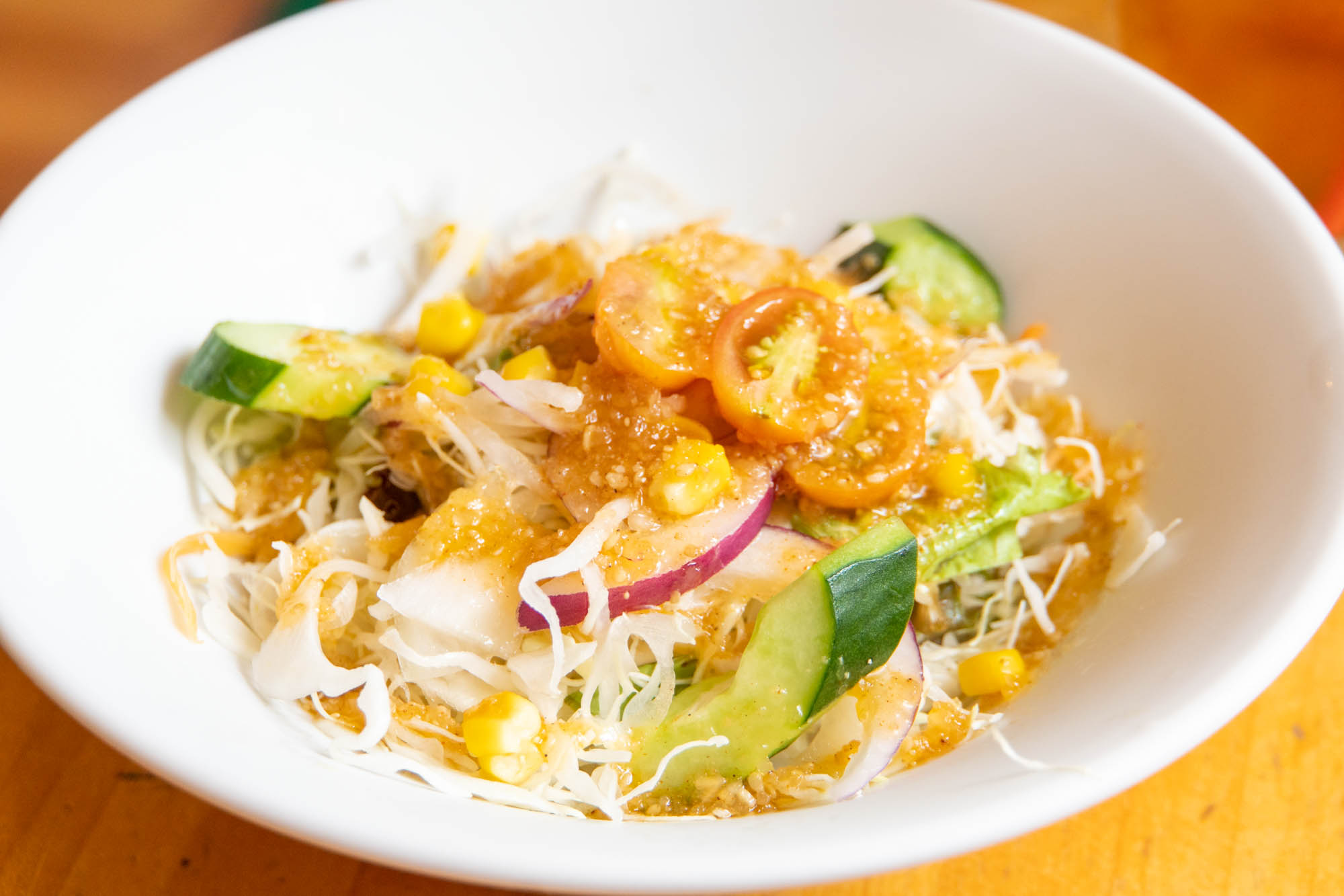 ご飯・サラダは無料で大盛にできますし、ご飯じゃなくてパンでも可!