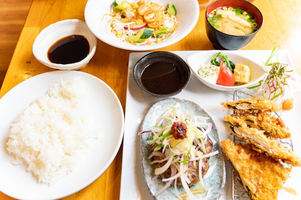 後ろにちらっと映っているのが紅葉おろしなどの薬味なんですが、ソースに薬味を入れて食べてもまた違った味わいになってうまーい!和風が加速するというか、ご飯が進みまくりますよ。