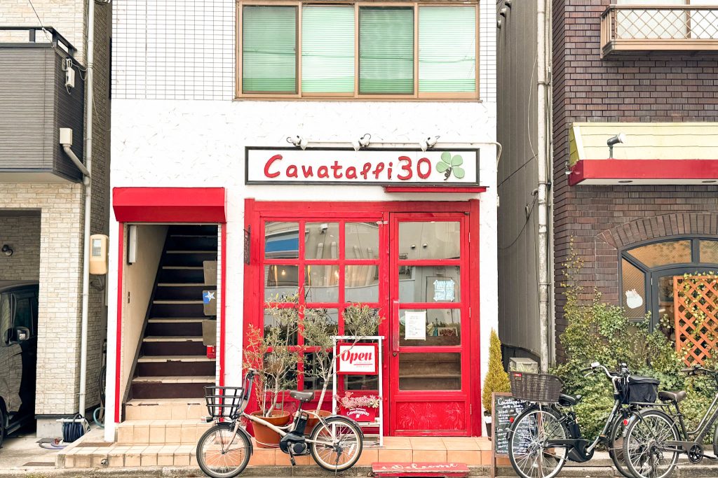 このカラフルな赤い扉と可愛い四葉のクローバーの看板が目印です!
