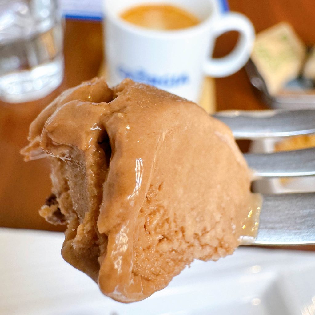 生キャラメルが乗ってるプリンは、プリンの滑らかな舌触りと、濃厚な生キャラメルの味がまさに贅沢な一口。幸せを噛み締めて食べました (笑)