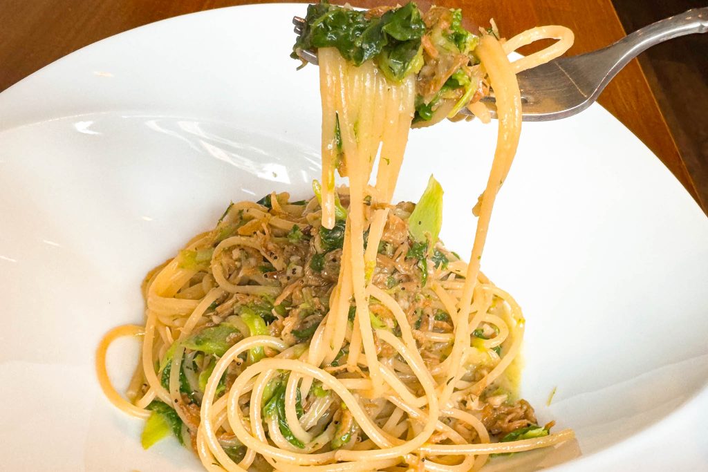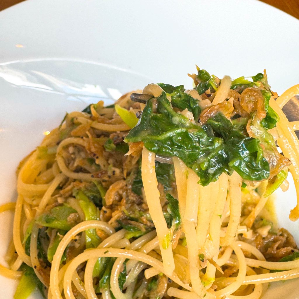 「干し海老と菜の花スパゲッティーニ香草バターソース」にしました。