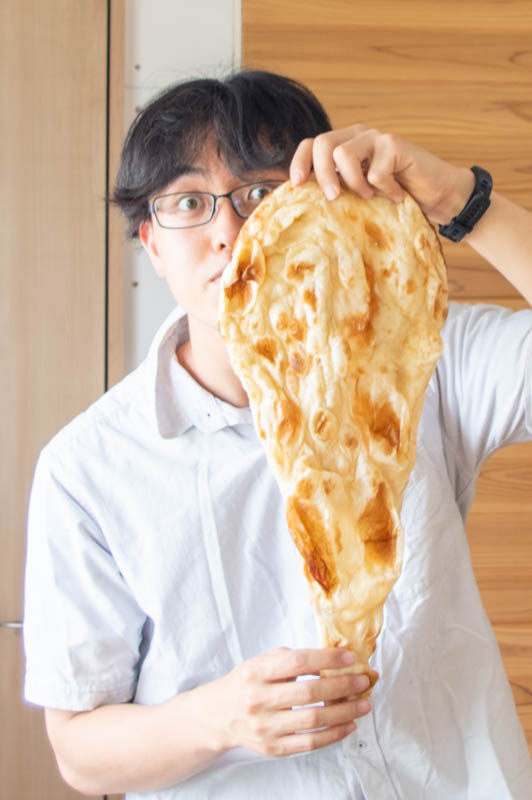 食べすすめると、僕の顔の2.5個分ほどの大きさのナンがあれよあれよとなくなっちゃいました。