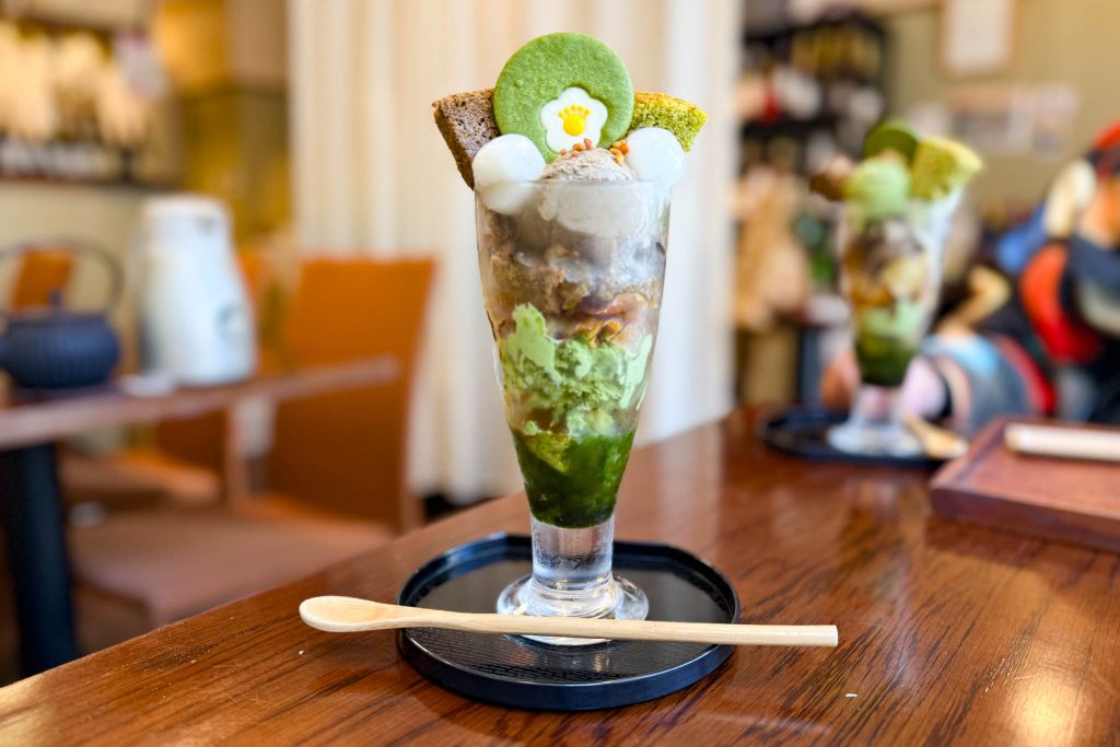 パフェの中にはスライスして素揚げしたさつまいもが入ってて、ほどよくほろ苦いお茶アイスと絶妙に合います。