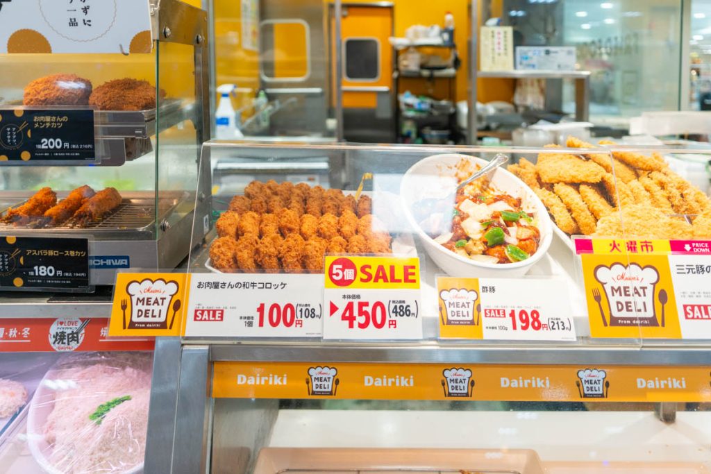 イズミヤの中で営業している精肉店。コロッケも販売されています。