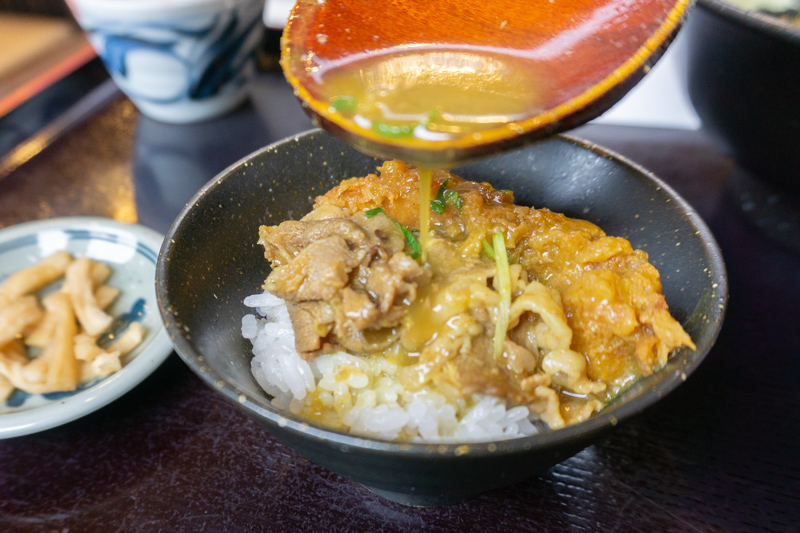 しかも、カツだけじゃなくって牛肉にも出汁がた〜っぷり絡まって、いろんな食感が楽しめちゃうんです。もちろん、揚げさんやネギとの相性も◎
