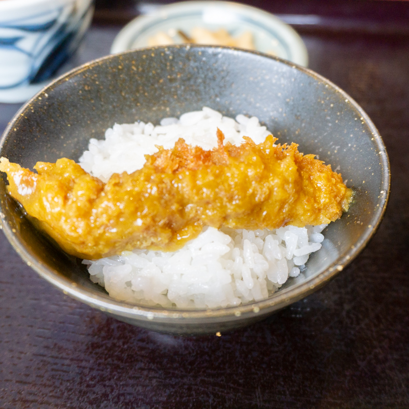 ついつい白ごはんのことを忘れて全部食べちゃうので、先にカツを取っておくのがポイント。