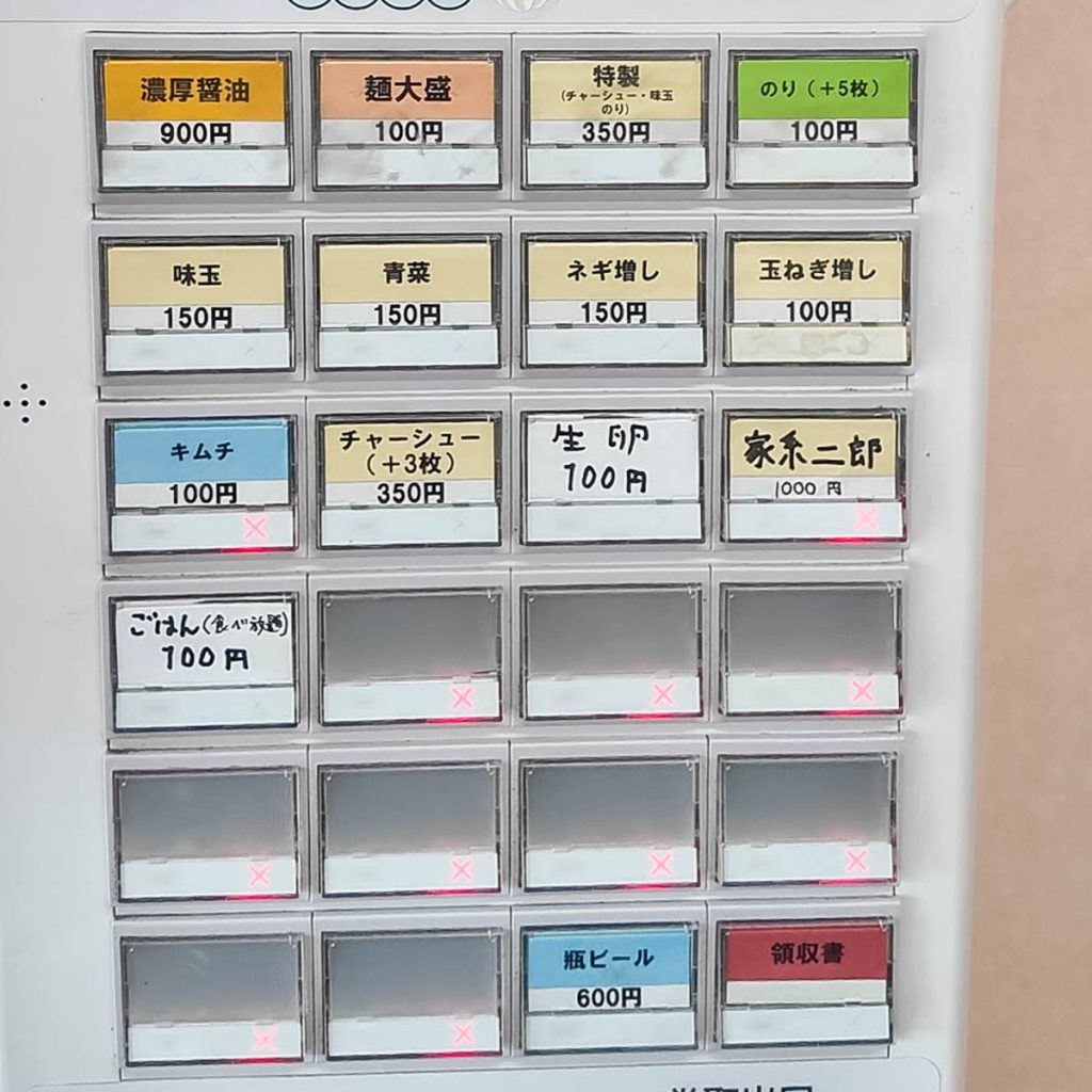 メニュー。家系二郎が気になるものの、売り切れ。夜限定なのかな?