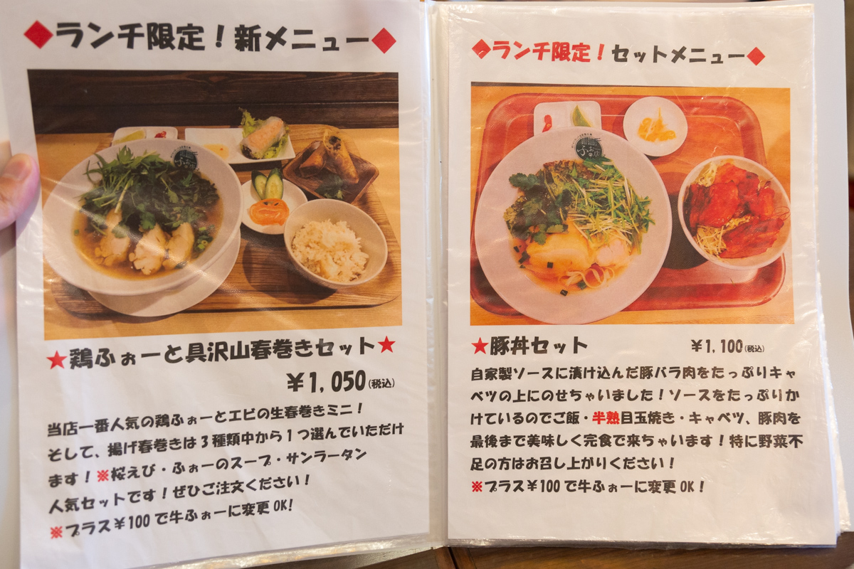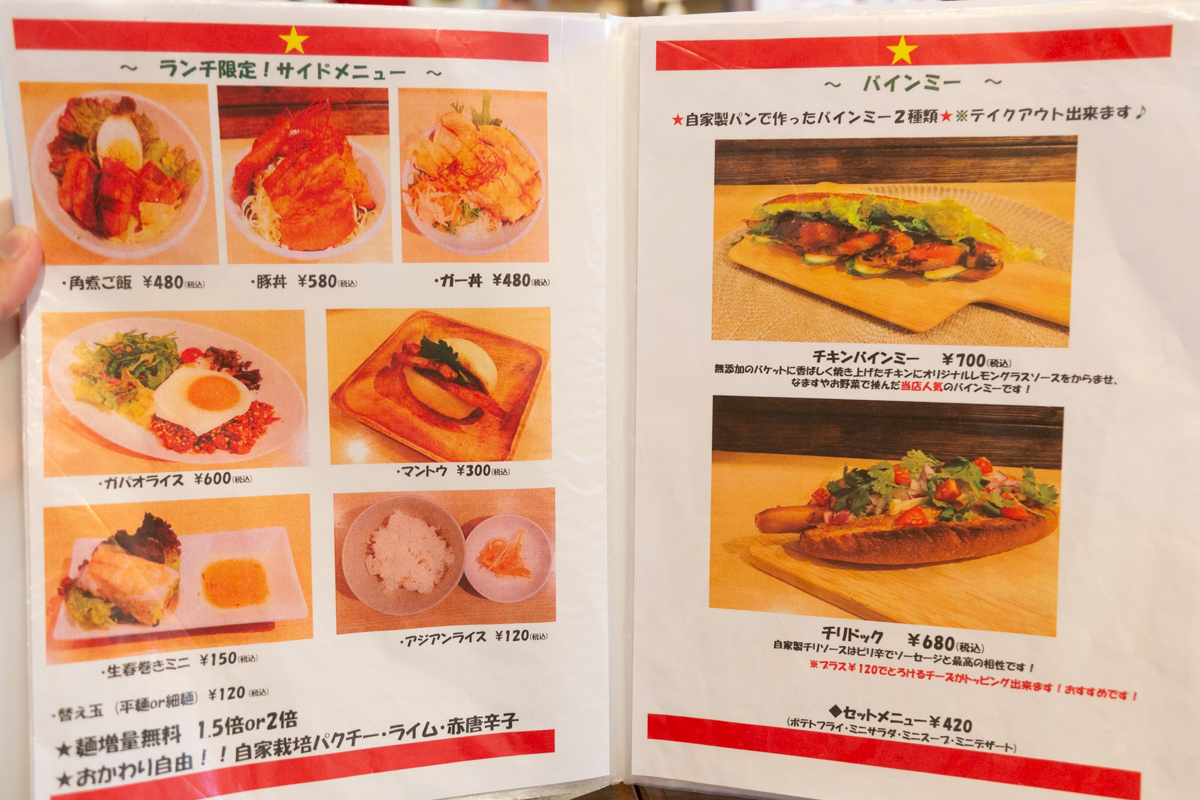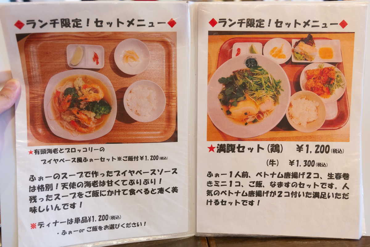 色んな種類のふぉーに加えて丼のセットやバインミーなどもあるので、ベトナム料理を楽しみたい人にオススメ。