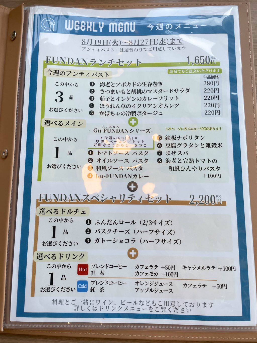 ランチメニューはこちら。その他にもフードメニューがたくさん。