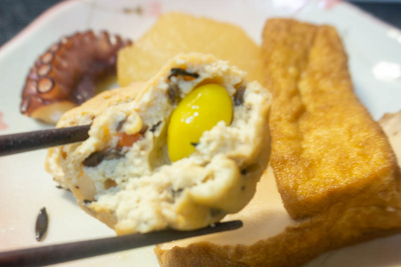 厚揚げと一口ひろうすはおでんにしていただきました。ひろうすの中にある銀杏がたまごの黄身みたいな存在でなんだか嬉しい気持ち。
