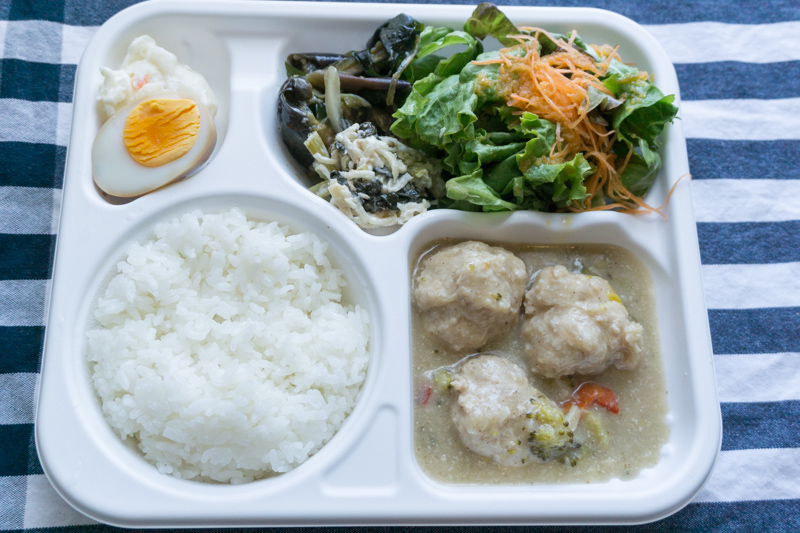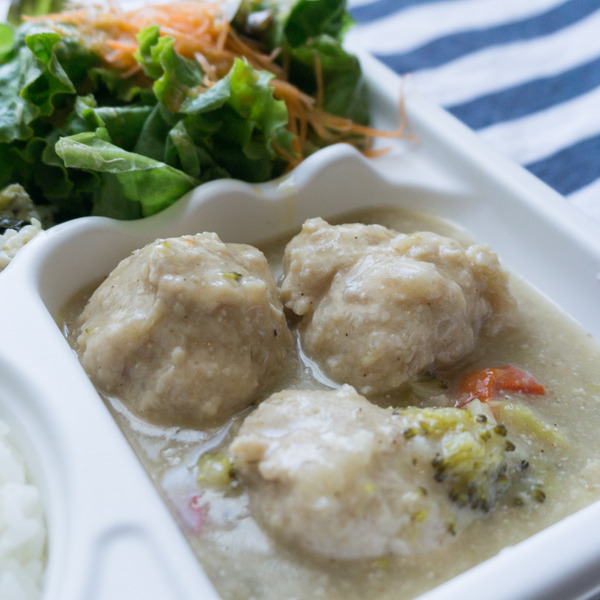 ほぼ日替わりで内容は変わるそうで、この日のメニューは「鶏つくねのアジア風ココナツミルク煮」。