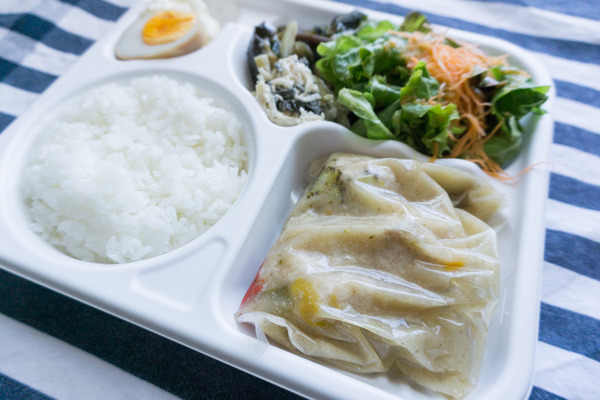 ご飯、副菜2種、ポテトサラダ、グリーンサラダ、煮卵つきという豪華なラインナップ!