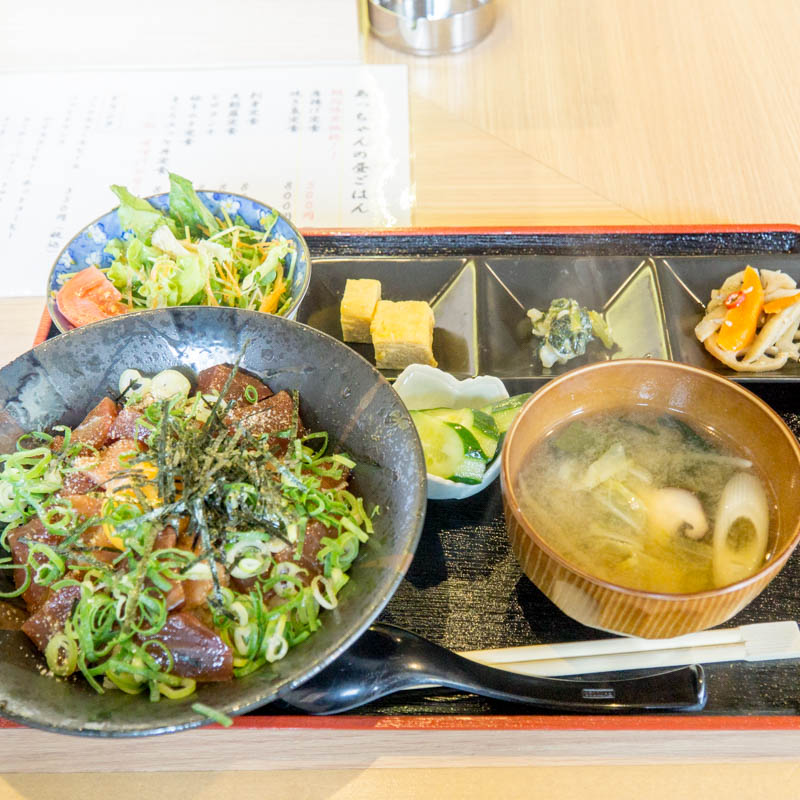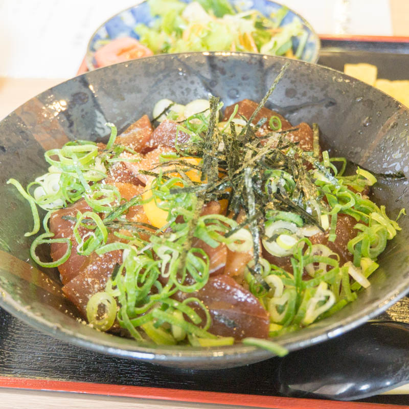 そんなわけでとりあえず食べてみようと注文したのがこちらの「マグロユッケ定食(800円税込)」