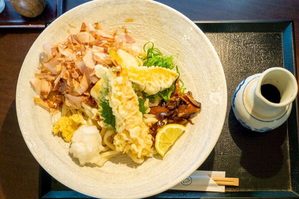一つ前の写真で椎茸の佃煮が見えると思うんですが、これまた私は初めての体験。佃煮とうどんを一緒に食べるとお出汁がちょっと濃くなって、違う味に。こんな味変初めて!美味しかったです!