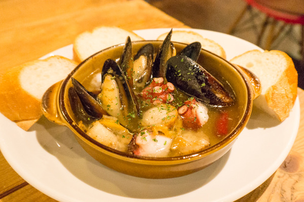 たこ・ほたて・ムール貝。バケットも付いてきます。