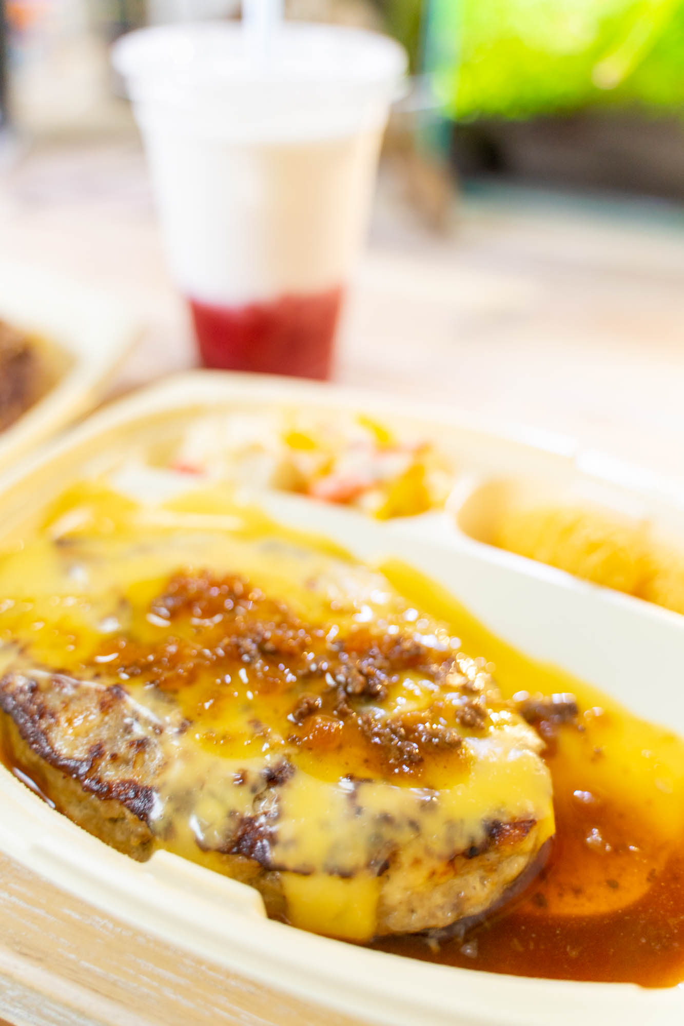 写真を見てわかると思いますが、チーズの海みたいになってるチーズハンバーグ。